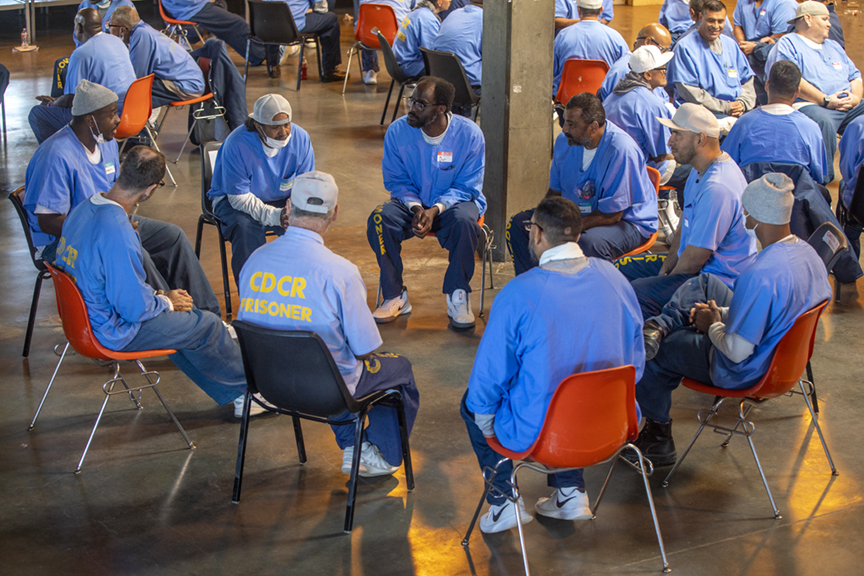 Compassion Prison Project’s One-Day Trauma-to-Transformation Workshop begins with the Compassion Trauma Circle. Steps are taken into a large circle of participants as they respond to questions about traumatic events they experienced in childhood — questions based on the Adverse Childhood Experiences (ACEs) Quiz.